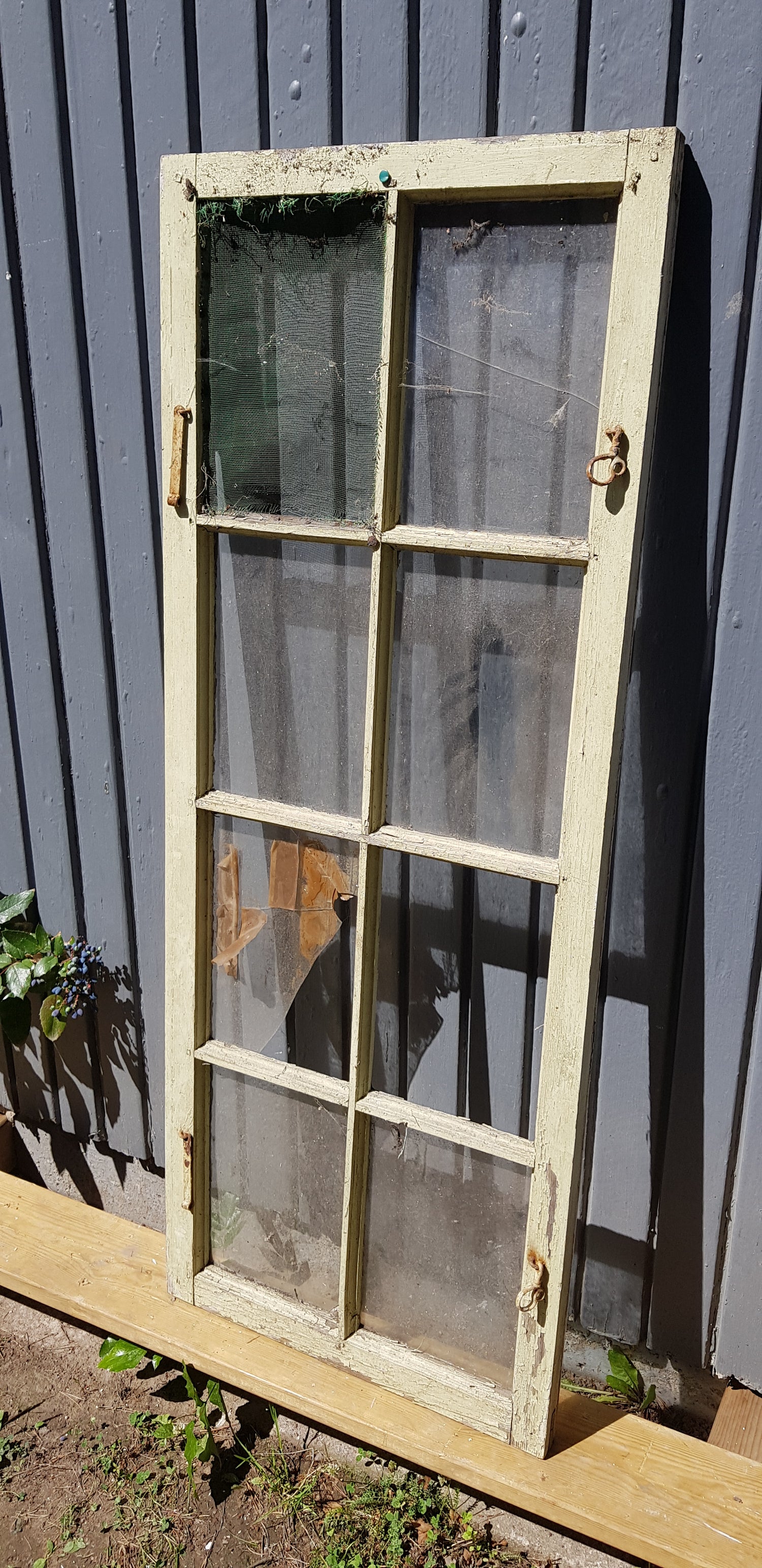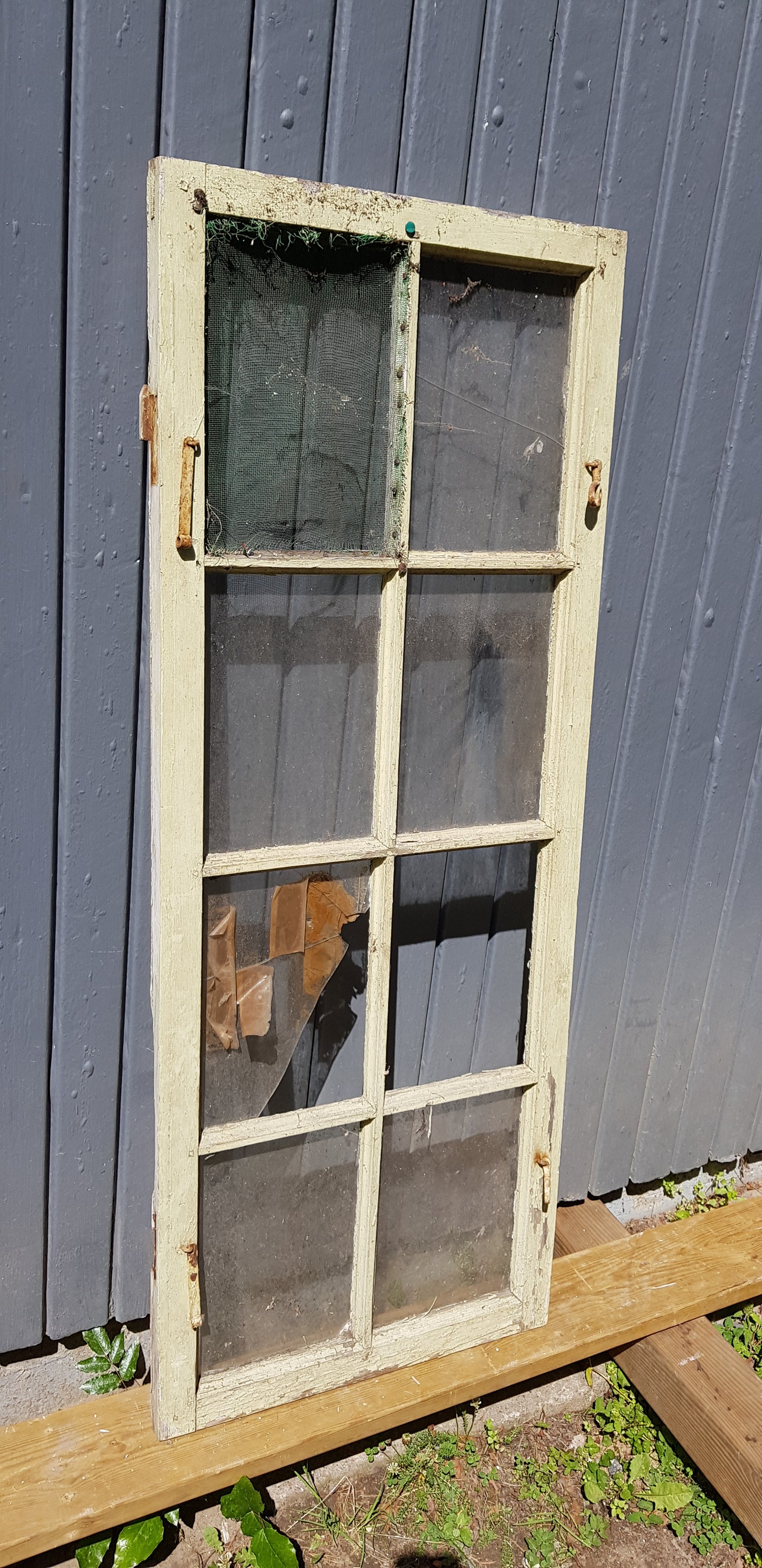 1st Äldre spröjsade fönster med äkta spröjs utan karm, har gammalt glas.