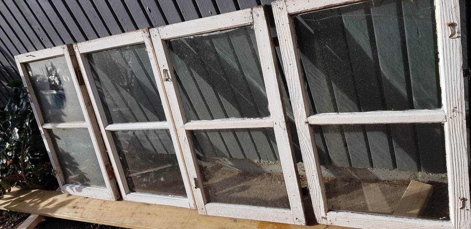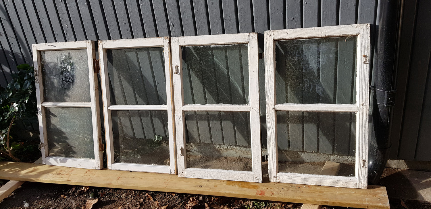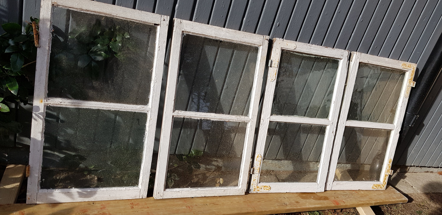 4st väldigt fina äldre spröjsade fönster med äkta spröjs, har munblåsta glas, perfekt till växthus eller uterum.