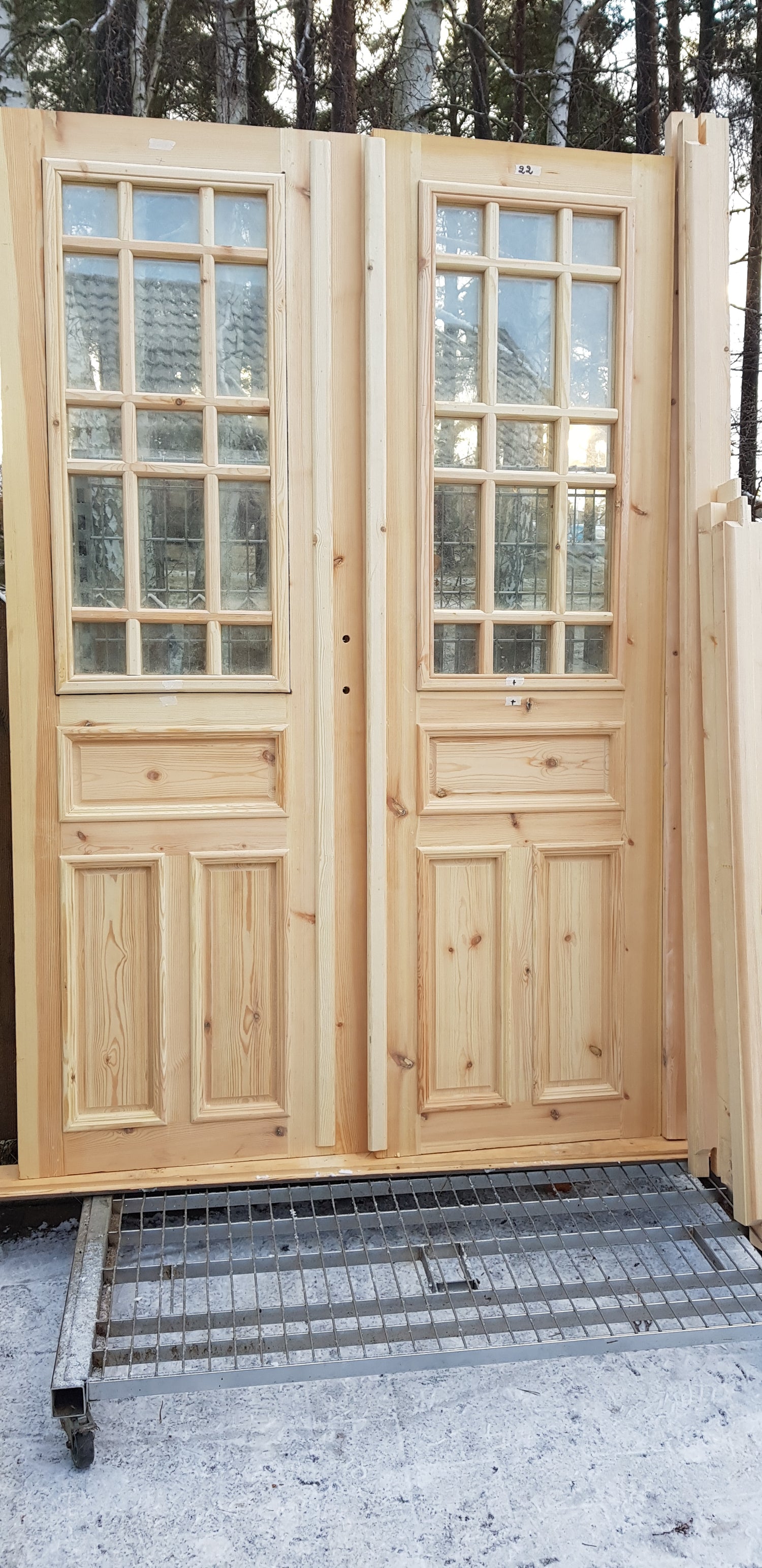 Nytillverkade pardörrar i gammal stil inklusive karm dubbelglas med äkta spröjs speglar på både insidan och utsidan B140 cm H210 cm Pris: 17000 kr