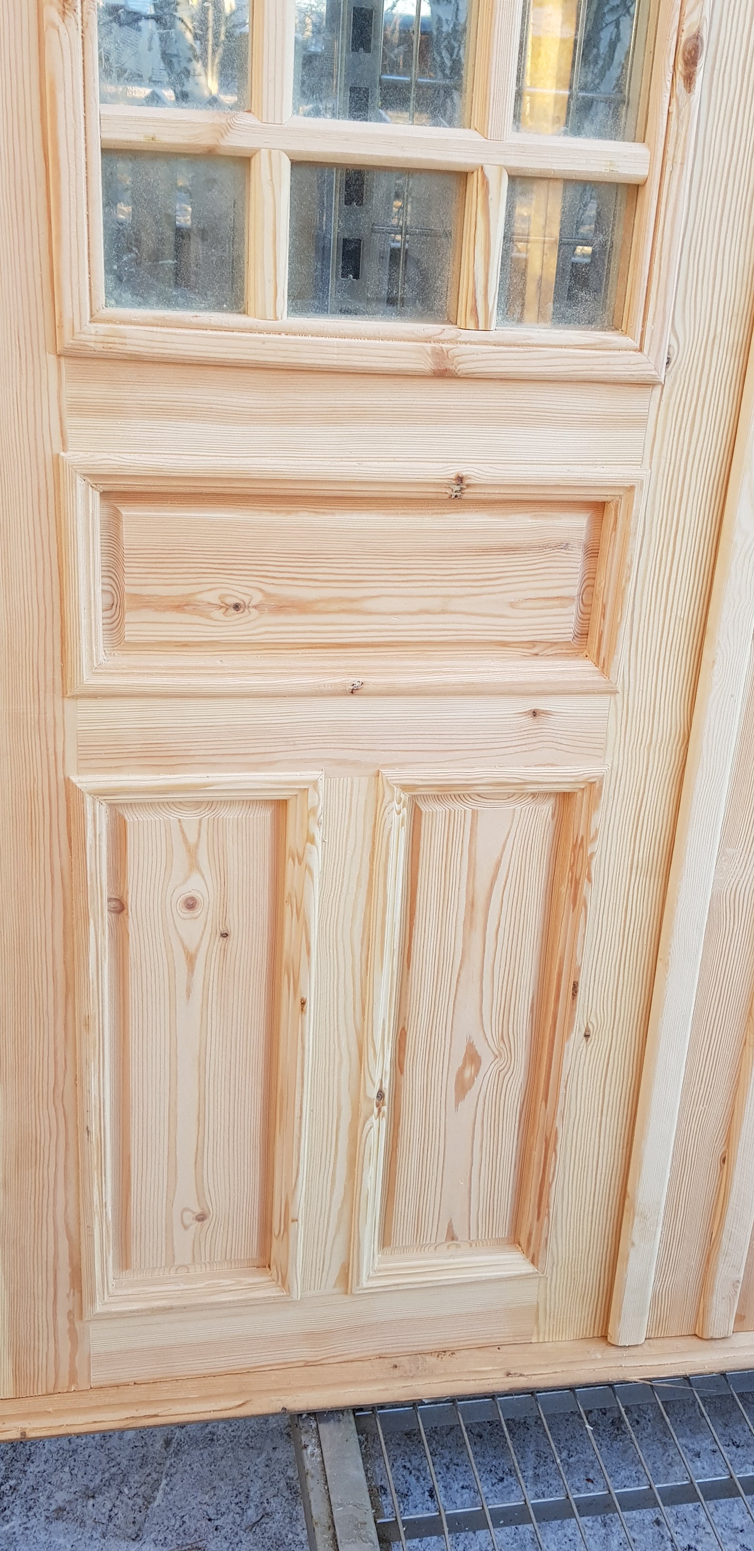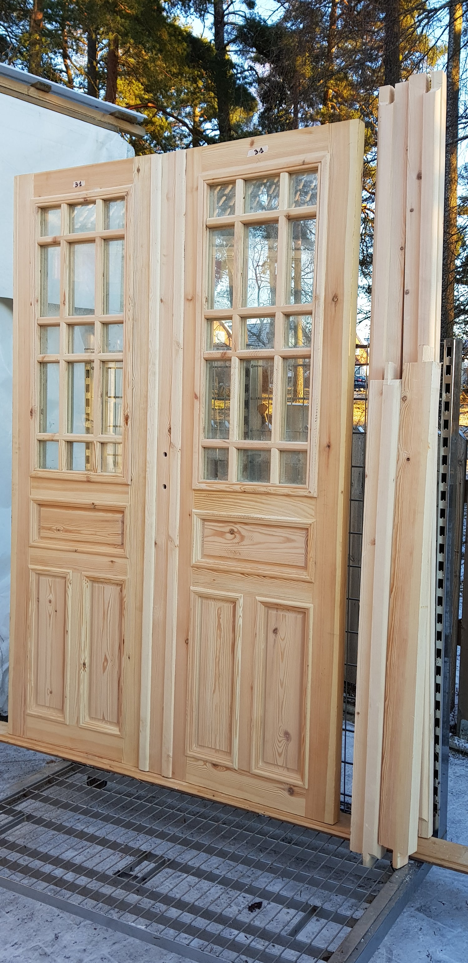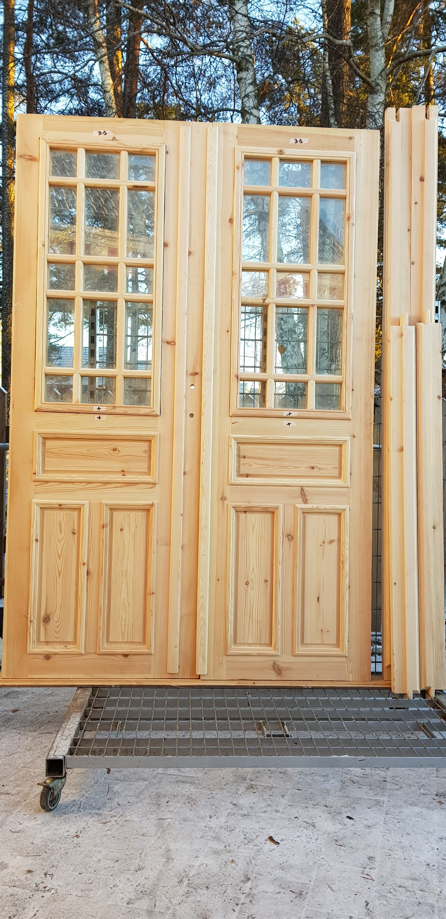Nytillverkade pardörrar i gammal stil inklusive karm.