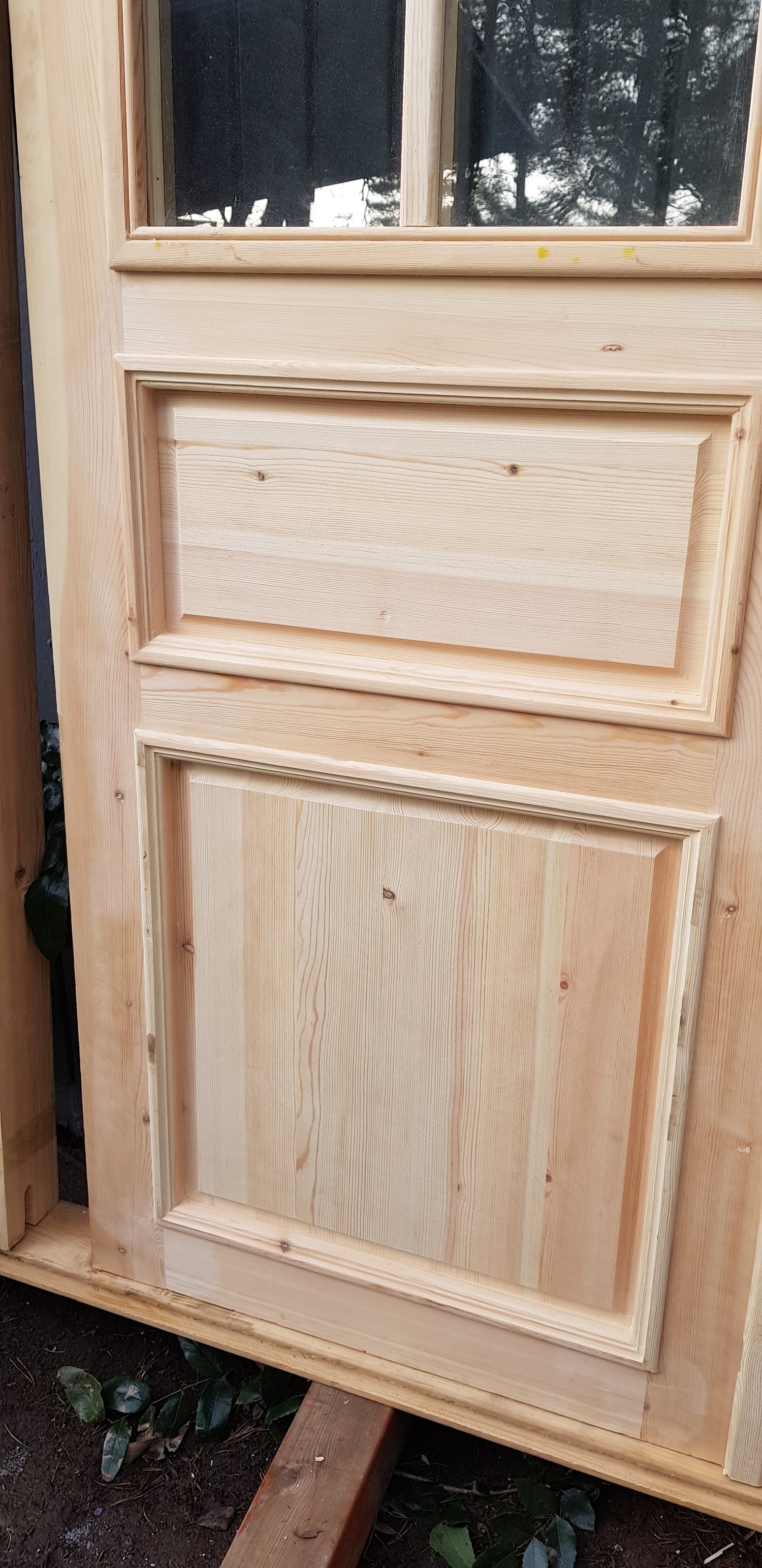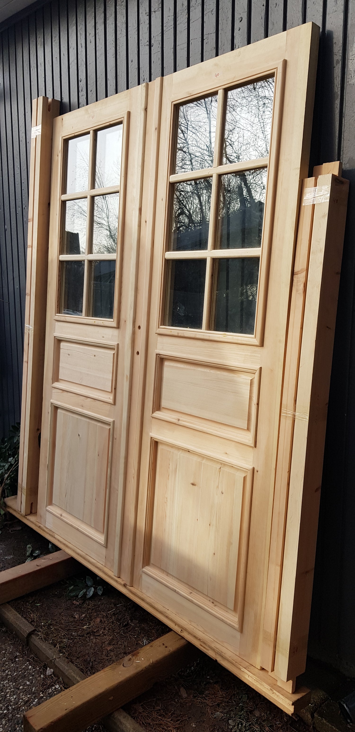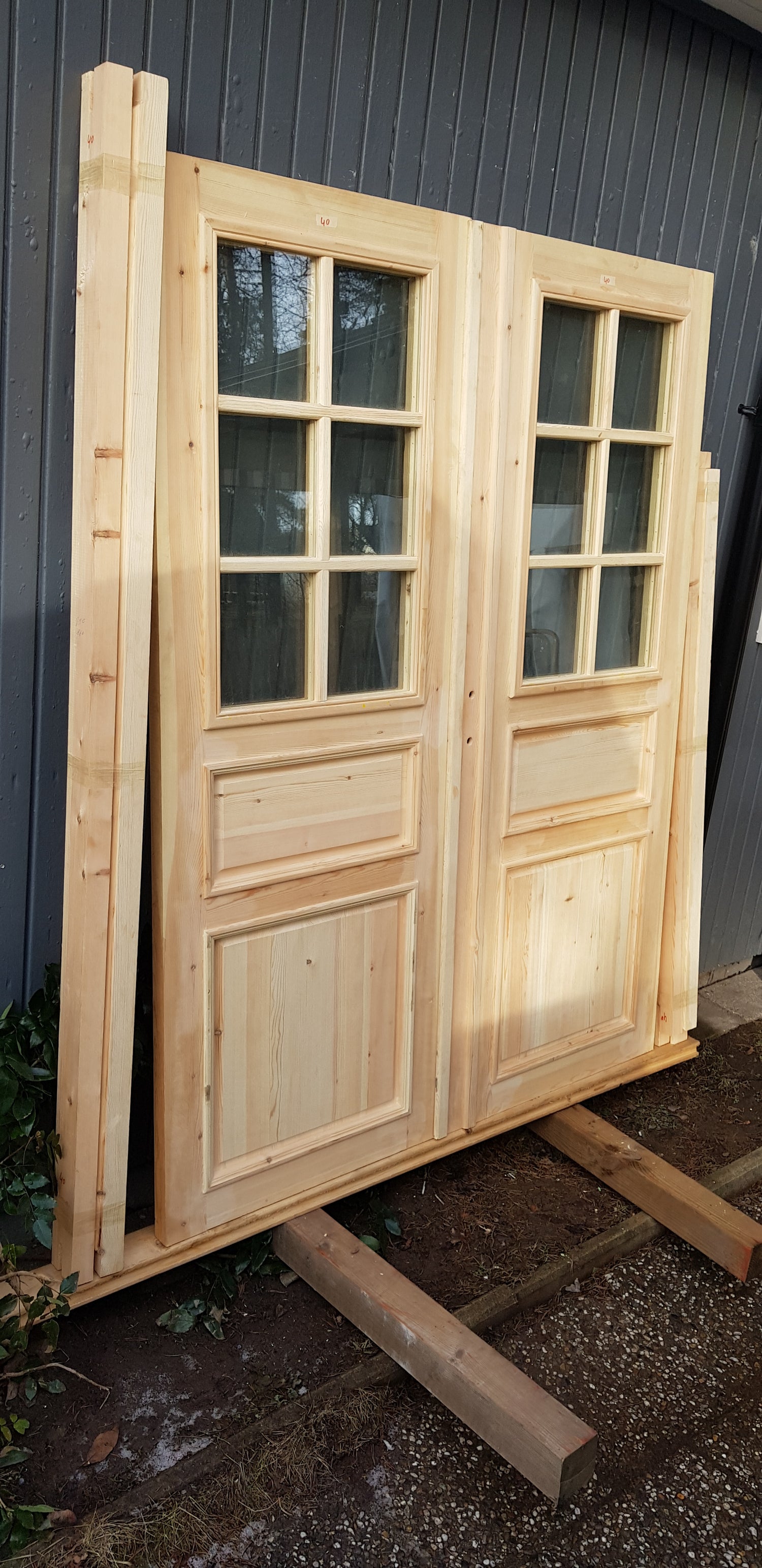 Nytillverkade pardörrar i gammal stil inklusive karm.