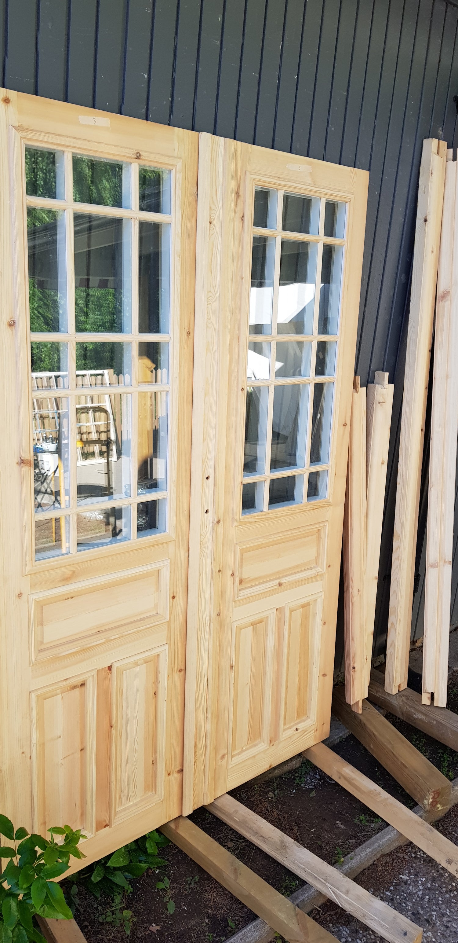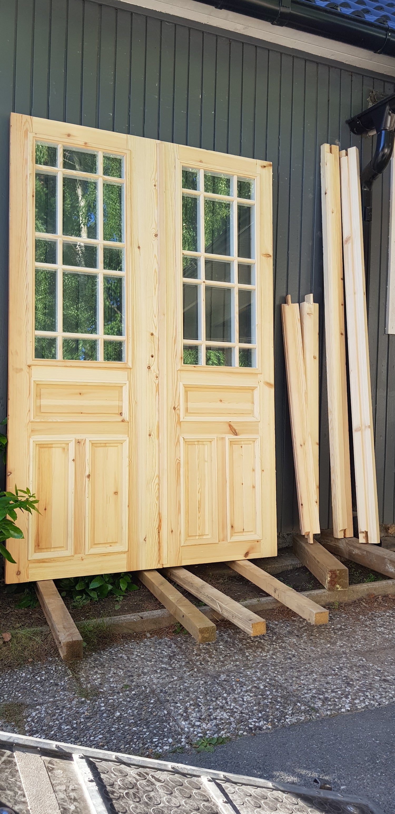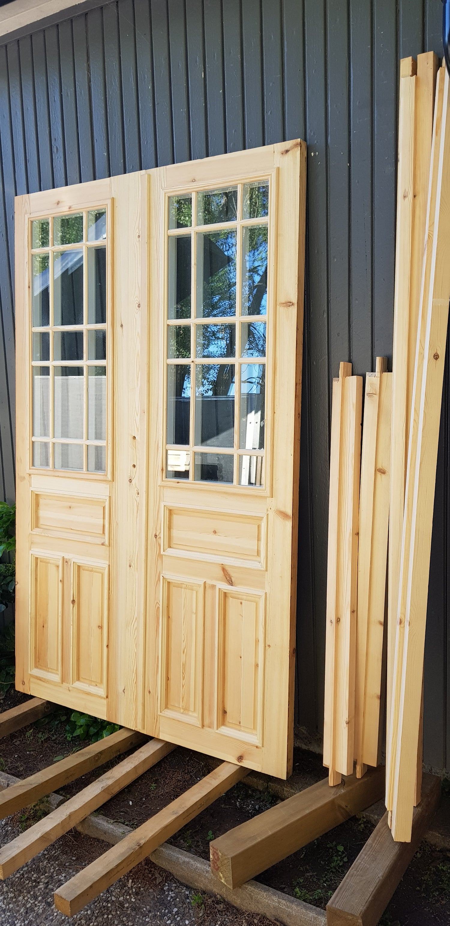 Art 33Q Ny pardörr i gammal stil med dubbelt glas inklusive karm B140 cm H210 cm pris: 17000 kr