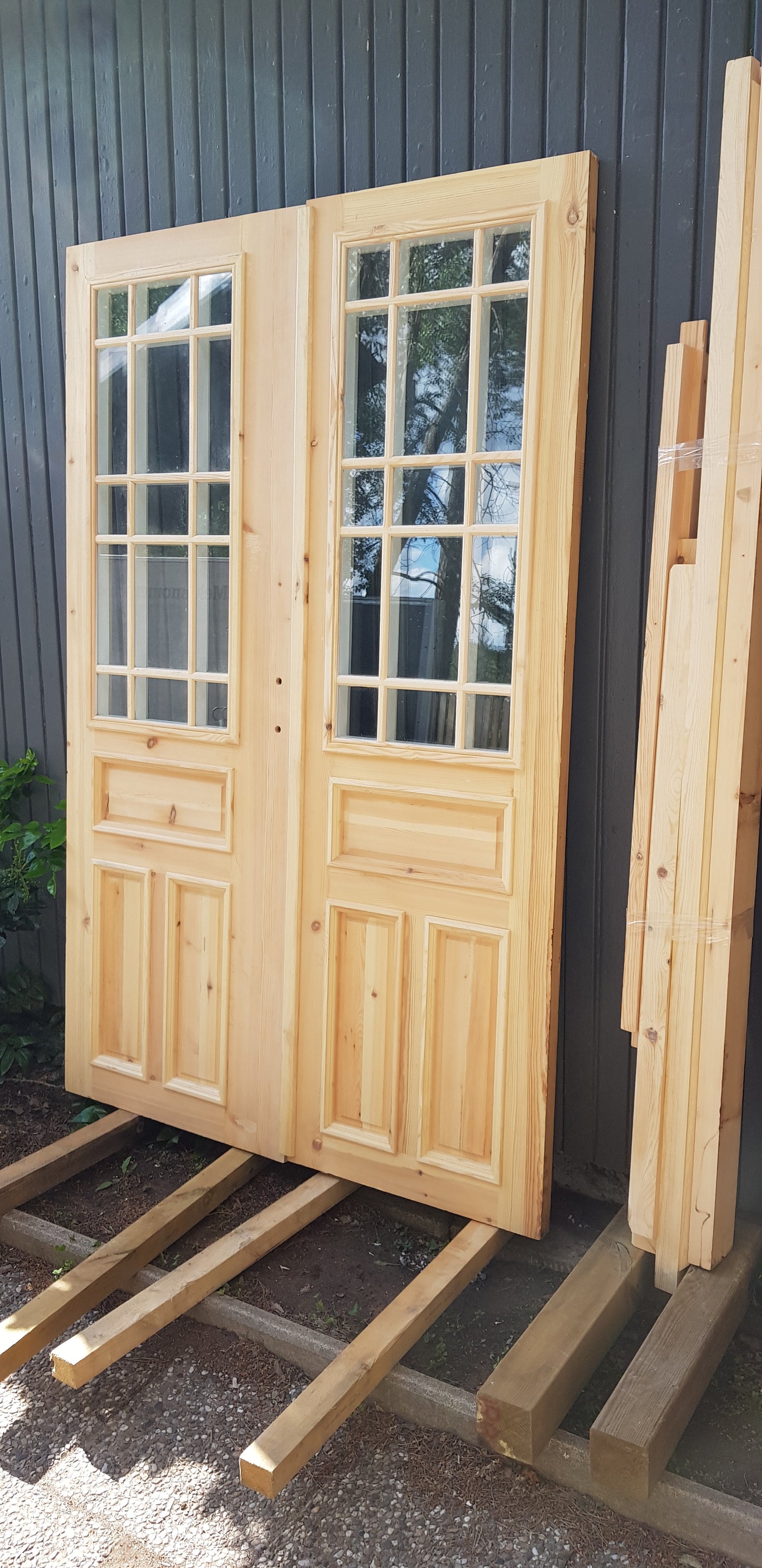 ny pardörr i gammal stil med dubbelt glas inklusive karm.