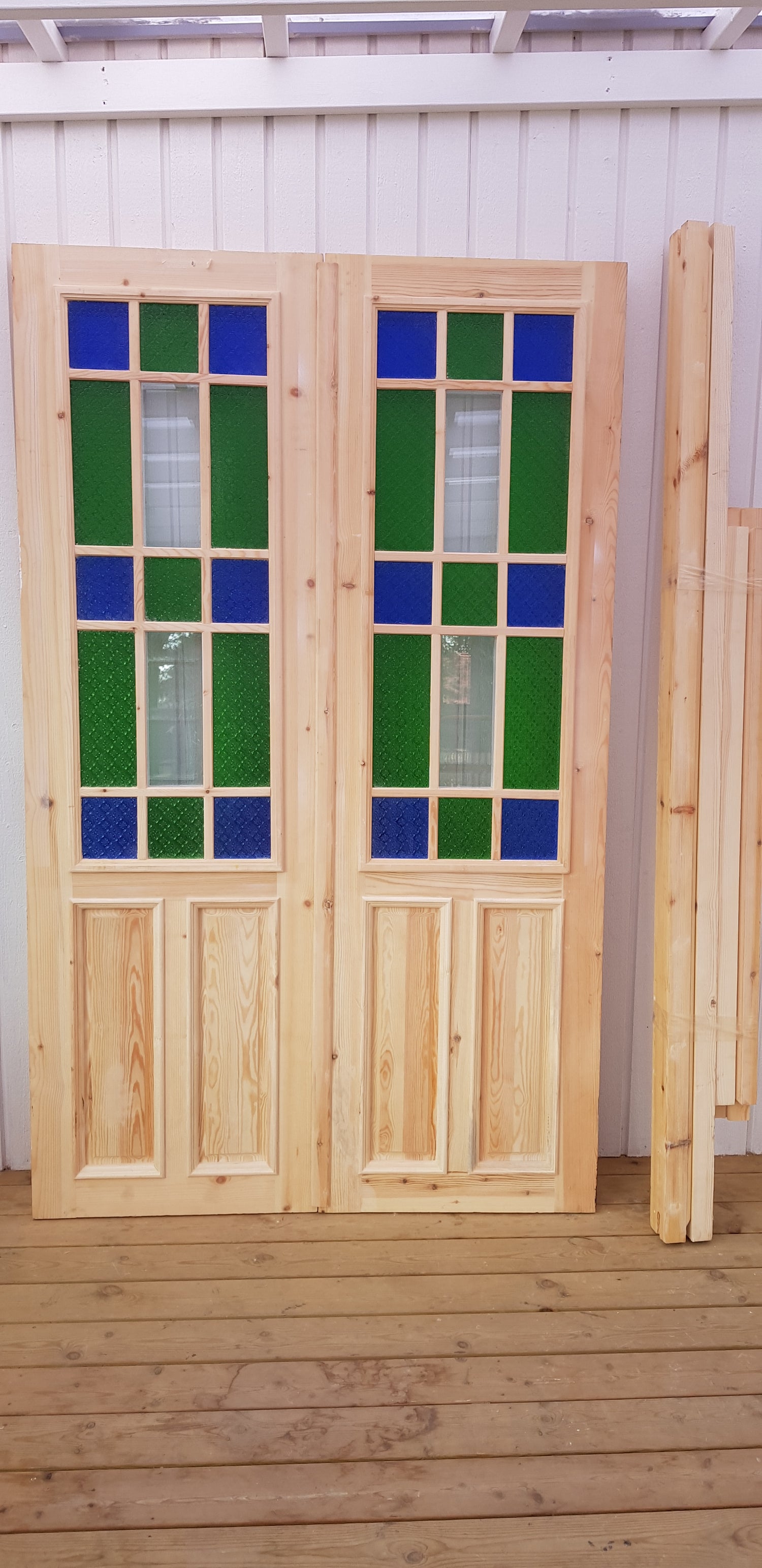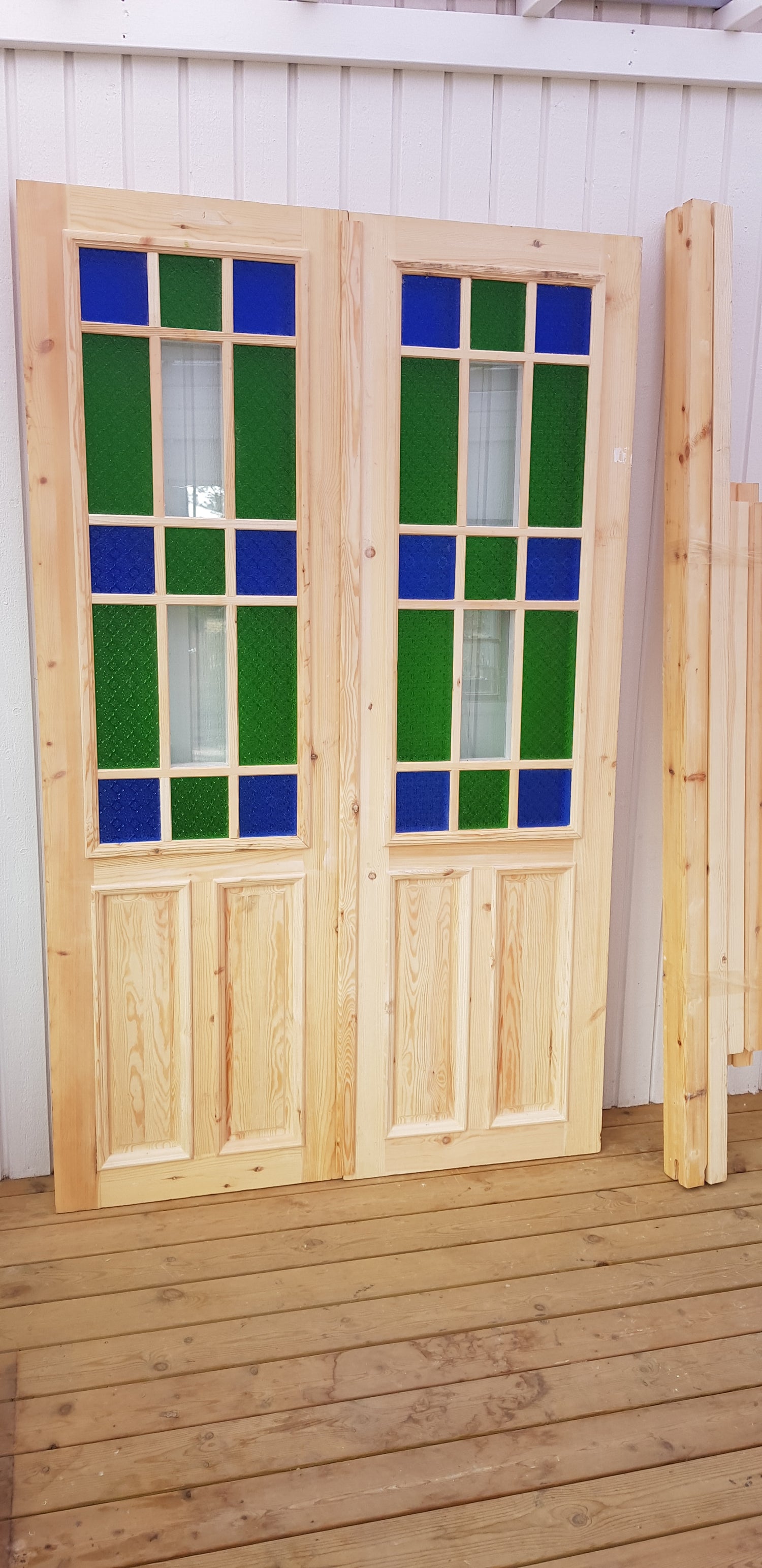 Art 33U Ny pardörr i gammal stil med dubbelt glas inklusive karm B140 cm H210 cm BR 80 cm pris: 17000 kr