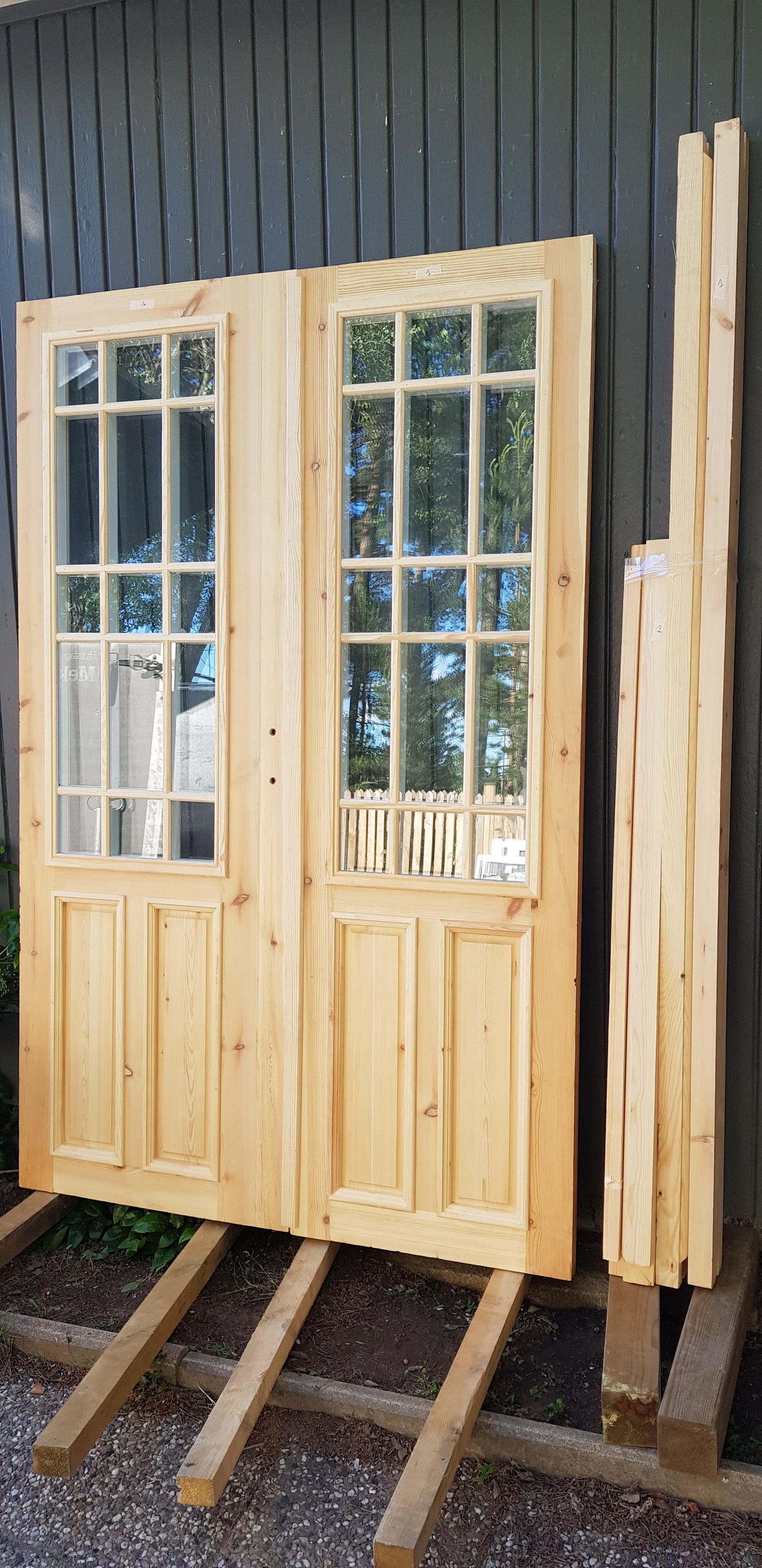 Art 33R Ny pardörr i gammal stil med dubbelt glas inklusive karm B140 cm H210 cm pris: 17000 kr