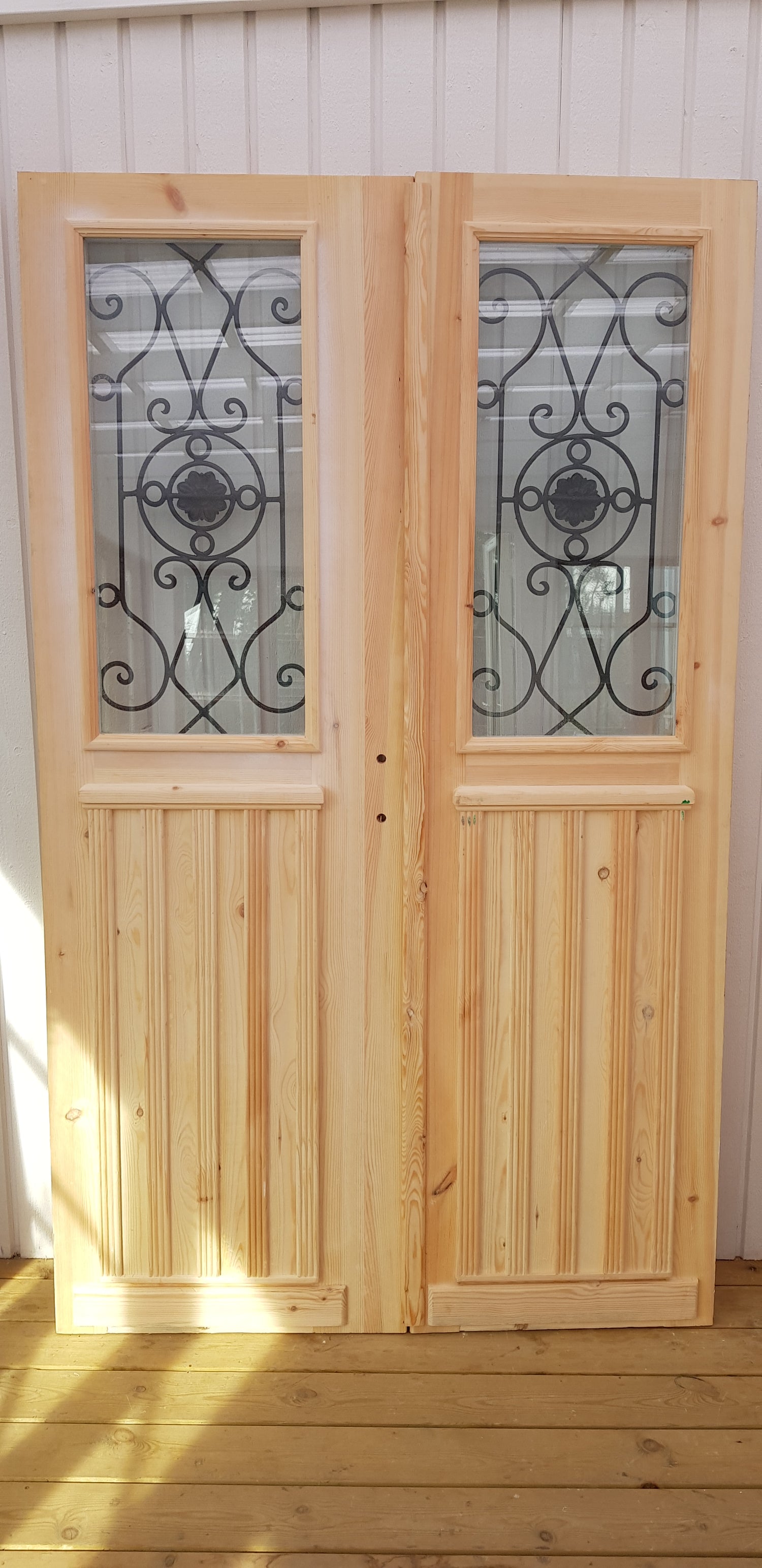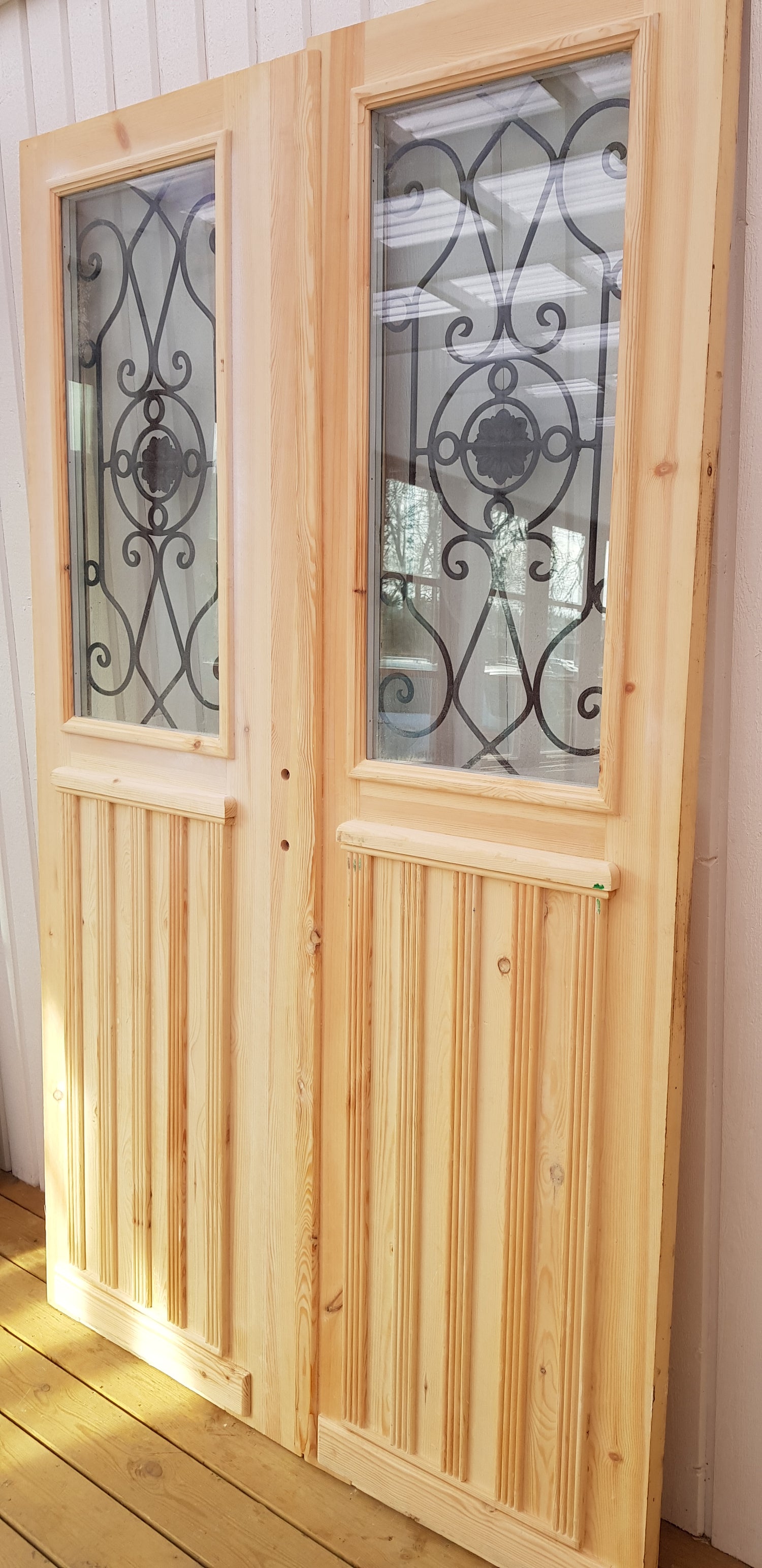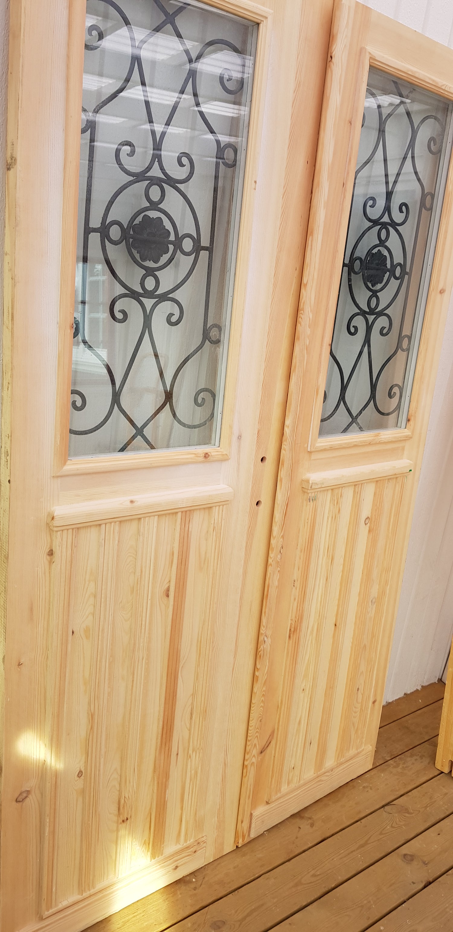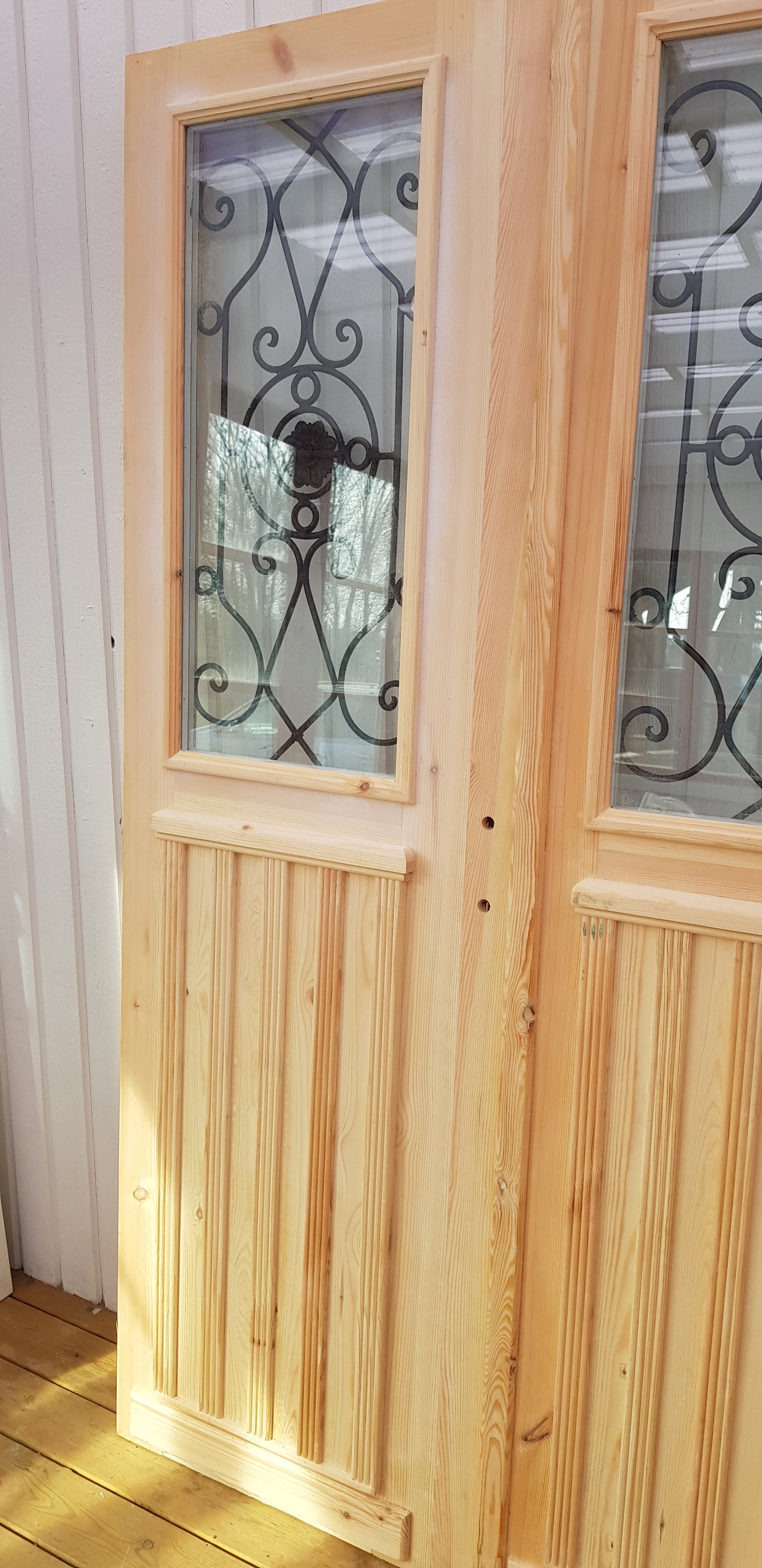 Art 33W Ny pardörr i gammal stil med dubbelt glas inklusive karm B130 cm H210 cm BR 110 cm pris: 19000 kr