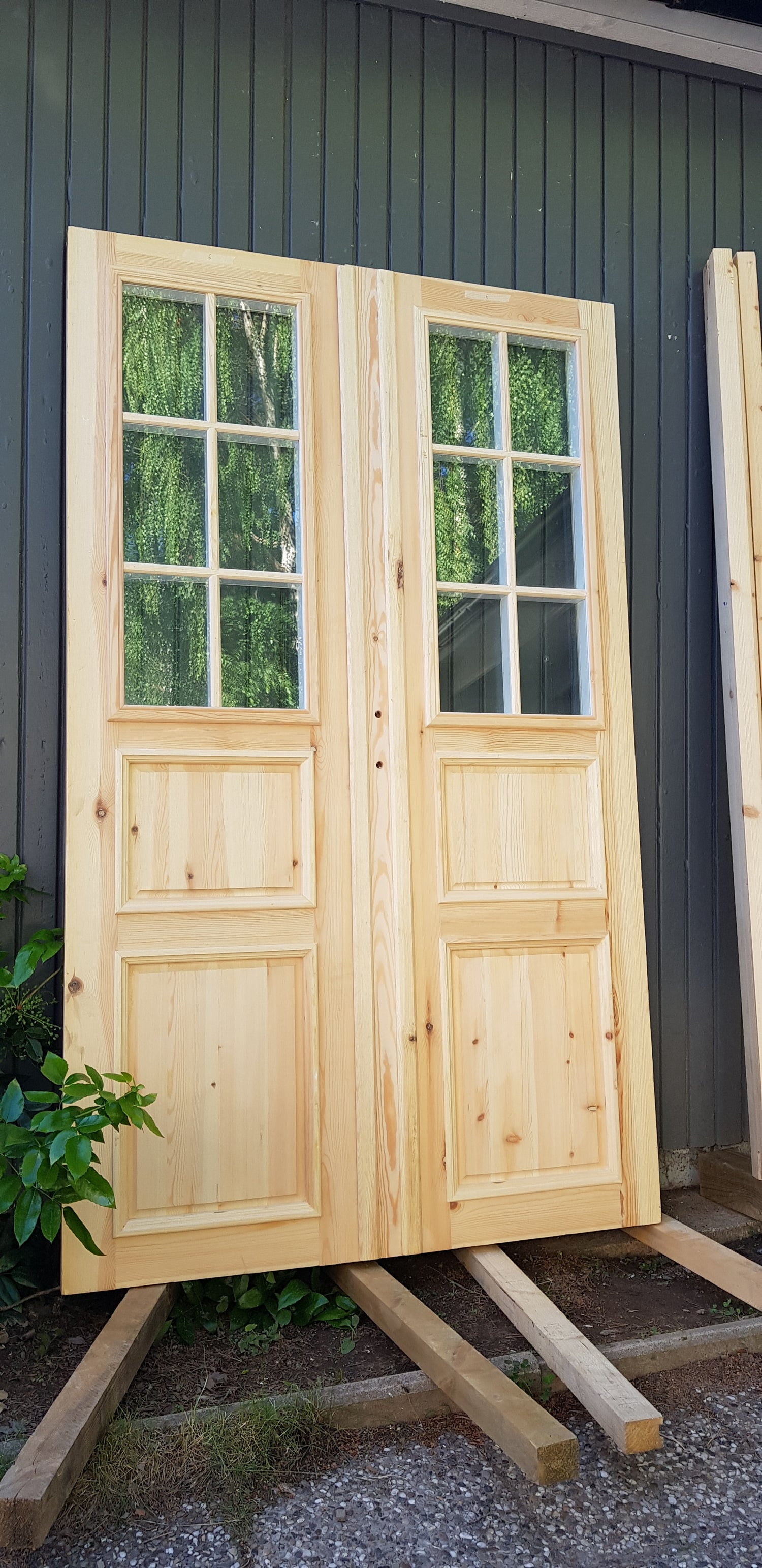 Art 33S Ny pardörr i gammal stil med dubbelt glas inklusive karm B130 cm H210 cm pris: 17000 kr